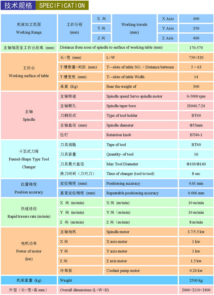 機(jī)床的三向?qū)к壐辈捎贸刎?fù)荷型滾動導(dǎo)軌,滾珠絲杠采用預(yù)拉伸,兩端固定安裝,機(jī)床運(yùn)動幅剛性高,精度穩(wěn)定。機(jī)床滾動導(dǎo)軌副、滾珠絲杠副均采用自動周期潤滑,并有效地進(jìn)行防護(hù),最大限度減少日常維護(hù)、保養(yǎng)。